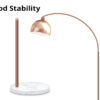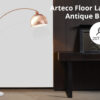 Architectural style makes this floor lamp a solid choice. Embellish a contemporary space with an outspoken accent. With finishes in antique brass and marble base, it plays to an upscale custom theme. An exaggerated arched body delivers lighting in a targeted space and creates a geometric effect. This gorgeous lamp stands out as a focal point in a living room or den.