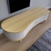 Ayla Tambour TV Stand has a retro, classic look while still being a contemporary design. Complete with oval silhouettes and tambour doors, our Ayla accent cabinet is a must-have for design enthusiasts. The overall streamlined design and unique material selection give this furniture a soft texture. The wooden panel and sliding door are wrapped in gray fabric to maximize its soft connotation, and the golden handles brighten the overall beauty. In addition, the interior adopts a simple layered structure to make more efficient use of space.
