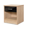 Featuring a black high gloss drawer front contrast design with an oak effect is guaranteed to add style to any room. Constructed of sturdy particle board, this functional 1-drawer bedside table with an open shelf, not only keep your clusters free but also access to your stuff easily. Simple yet stylish. It will be the best mate for your bed.
