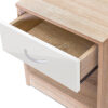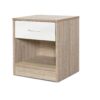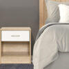 Featuring a white high gloss drawer front contrast design with an oak effect is guaranteed to add style to any room. Constructed of sturdy particle board, this functional 1-drawer bedside table with an open shelf, not only keep your clusters free but also access to your stuff easily. Simple yet stylish. It will be the best mate for your bed.