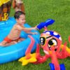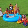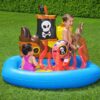 Travel on a voyage out to sea, search for hidden booty, and batten down the hatches in this Bestway® Ships Ahoy Play Center. Fill the pool up with water, and watch as your child’s imagination runs wild! The moveable ship wheel allows your little Captain to steer their ship out of trouble or incoming storms – all while splashing the day away in your backyard. The play center also includes an octopus and 4 inflatable rings, providing a fun ring toss game for your little one to play, all while helping them develop motor skills and hand-eye coordination. This play center is simple to set up and doesn’t require the use of any tools. It easily inflates and deflates, and it has a drain valve to quickly get rid of the water when you’re ready to put it away. Both you and your kids will feel like you’ve stumbled upon hidden treasure with the Bestway Ships Ahoy Play Center!