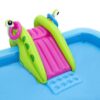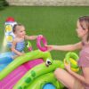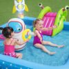 Beat the summer heat with your very own out-of-this-world water play center. The Bestway® Little Astronaut Play Center will take your child on a whimsical journey through the far reaches of outer space. Launch down the Google-eyed alien slide into the pool below. Pass by the rocket ship and experience the cooling effect of the built-in water mister. This gentle sprayer will not only give soothing relief from the heat but may also cause a rousing fit of wiggles and giggles. Simply connect a garden hose and let the fun begin. Splash into the pool and enjoy a game of ring toss with the moon or try knocking down the floating astronaut bop-bag toy. The crescent moon is removable and can be placed anywhere on the pool for ring toss challenges. For even more fun, the included inflatable planet frisbees are fun to fling through the air or float in the water. Let your child’s imagination blast off with the wonders of the Little Astronaut Play Center.