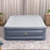 The built-in AC air pump inflates the mattress in 4 minutes, so it is ready for bed when you are. In the morning, the quick deflate valve allows for easy takedown. Simply place your flattened and folded bed in the included carry bag for easy transport and storage.