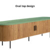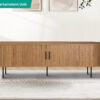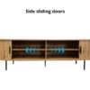 This entertainment unit has a clean, solid silhouette with both the natural character of wood and the charm of modern design. The unit is made of quality particle board with paper, giving it a solid and sturdy feel. It offers ample storage space with four generous-sized cabinets with side sliding doors and a spacious tabletop to fit your large-screen TVs with ease so that everything is organized and mess-free. The tall metal legs allow for easy passage of the sweeper, providing the whole unit with firm support.