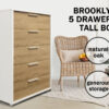 The Brooklyn Tallboy/Dresser is a great addition to your home decor or bedroom furniture needs. The stunning contrast between the oak colour on the front and the white framing is the hallmark for the Brooklyn range. This range offers you a sleek contemporary look with an affordable price tag.
