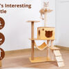 Made of durable wood, This cat tree design features multiple platforms, a cat nest, and even a Hammock! It has eco-friendly sisal posts for them to scratch on instead of damaging your carpet, curtains, and furniture.