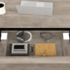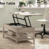 This modern living room coffee table offers ample storage, providing both open and concealed spaces to organize your TV remotes, reading materials, and other household essentials.