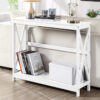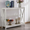 Crafted from an eco-friendly MDF board, the Console Table features a timeless design that is well-proportioned and durable in every aspect. Simple as it may look, the Console Table actually utilizes the side cross bracing to depict a distinctive style as well as to provide reinforced supports. The two tiers of shelving offer ample space for decorative displays, collectibles, and even books. This means that the Console Table can be re-purposed in a number of ways to suit your décor requirements.