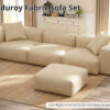 Corduroy Fabric Sofa Set (Left+Right Armrest Seater+Armless Seater+Ottoman)