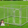 PR666376 (3) Keep your pets safe with this outdoor galvanized steel frame dog run. This multipurpose dog run is ideal for training, playing or exercising. The sturdy and heavy-duty galvanized steel construction and chain link mesh ensure your pets stay out of trouble while providing ultimate ventilation, also allows your pet to move about freely with no chance of them slipping out of the sturdy structure. Ideal for private homes, pet rescue shelters, or pet hotels the easy to assemble pet enclosure is must have for pet lovers.