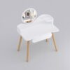 Full of girlish feel design. Crafted with MDF board and solid wood legs. Simple and smooth arcs present its softness. Moreover, equipped with a vanity mirror and a shelf on top of the table make it more practical. Small size will fit any bed room easily.