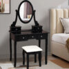 With 2 small drawers and 3 big drawers under the dressing table, Everett Dressing Table Set offers sufficient space to hold your cosmetics, jewelry, ornaments, hairdressing utensils, and other accessories. Made of quality wood and MDF, this sturdy vanity dressing table will meet your long-term needs and decorate your home all the time. The large mirror with elegant lines reflects your style before heading out for a date. And the stool has a really comfortable top. When you are sitting on it and dressing yourself, you will feel that it’s really an enjoyment.