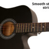 The combination of tonewoods gives the Acoustic Guitar plenty of acoustical and tonal qualities to sound good with every strum. The auditorium size also makes for easy and comfortable holding for players with smaller builds.