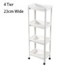 ? Multi-Purpose Storage: This multi-functional storage cart width is 23cm, which can be widely suited for home narrow space daily storage like bathroom, laundry rooms, kitchen; which can be used to store shower gel, shampoo, towels, cosmetics, toilet paper, detergents, snacks, drinks, fruits, etc.
