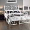 Add a touch of elegance to your bedroom with this Elizabeth Metal bed. The headboard and foot board boast tradition scrollwork curves with round finish posts to provide a simple, yet classic look. Sturdy powder-coated steel frame, across the frame, the bed includes wooden slats and supporting legs for added support and comfort. Designed to fit standard double mattress effortlessly, our Metal Bed is guaranteed to give you pleasant dreams with every sleep.