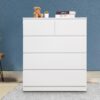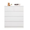 If you find yourself in need of some extra storage space, look no further than our practical and handsome Enkel 5 Drawers Tallboy. With its effortlessly simple and contemporary design, this beauty is crafted from quality particle board and features a flawless paper finish that will easily match your existing home décor. It provides plenty of storage space with three large drawers and two small drawers for all your personal essentials. The drawers are easy to open and close, thanks to the smooth runners. With such a modern design, ample space and flexible style, you just can’t go wrong with the Enkel 5 Drawers Tallboy.