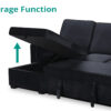 Combining contemporary style and sophistication, this corner sofa is a perfect fit for any living room. Offering practicality and convenience, this piece can also transform into a comfortable bed with a simple pull-out function. Additionally, the reversible chaise piece of the sofa features a space for storage to help you make the most of your living space!
