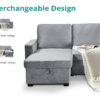 Interchangeable L-shape sofa bed set: Chaise can be placed to the left or the right.