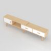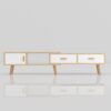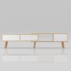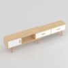 This entertainment unit is a perfect piece for a modern space. A combination of practical and functional design gives it more creativity. Extendibility is its main selling point. It can be expanded from 133cm to 200cm long to fit the size you like according to the size of your space. With two spacious drawers and a swing door storage keep your odds and ends tidy. In terms of color tone, the wooden color frame and white color doors as an embellishment make it look generous and can adapt to various forms of design styles.