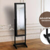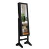 The floor standing mirror is made of MDF frame and supported by a stand. With adjustable axis rotation, it serves you from different angles. Furthermore, the cabinet is convenient for you to organize your jewelry, which is helpful when dressing. The design of mirror looks elegant and beautiful which will be a graceful addition to the room. Surely you will be pleased with this innovative mirror.