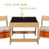 What’s more, the table can be used as their very own canvas. Flip it over, give them some chalk, and watch them create art on the blackboard. Wipe it down with a wet cloth to clean it up or just flip it over. Not least, store away all the toys, chalk and pencils your children use under the tabletop and toys under the chairs. Keep their mess only in one space and maintain an orderly house.