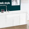 Display all your collectibles in style with our Glansig Buffet Table. The drawer and cabinets have push-to-open mechanisms to maintain a sleek appearance and provide ample storage for all your home essentials. The sideboard is built to last with 15mm thick melamine particle boards with UV high gloss finish, strong cabinet hinges, smooth drawer runners and anti-scratch feet pads. With its contemporary and linear design, the sideboard is the perfect addition to any modern home and will suit any décor. So use it in the living room, dining room, kitchen or hallway to present a stylish and clutter-free space at all times.