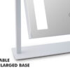 our standing makeup mirror features 3 LED strips on its metal frame. In fact, the entire mirror is almost frameless. The lights can be adjusted for brightness and colour, from cool white to warm white with its touch control, offering a soft and ambient glow to complement your true image.The mirror is totally rotatable and stands on an enlarged base for added stability.