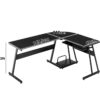 The Irina L-Shaped Computer Desk includes two rectangular desktops which offer you plenty of space for gaming, writing, working, handcraft, and other activities. The Round corner design is more elegant and easy to be stored at corner. Constructed by heavy-duty powder coated metal frame and solid particle wood top with melamine lamination, it provides strong stability and sturdiness. Not least, the desk is equipped with a keyboard tray under the tabletop and a CPU stand at the bottom for space-saving. Bottom anti-slip feet also prevent slipping and wobbling and protect any floor.