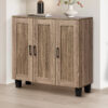 Storage abounds when you add this rustically styled piece to your hallway or entrance for the look you have been longing for. This Johnson 3-Door Shoe Cabinet with 4 shelves makes it easy to keep your shoes stored neatly and organized away. Framing detail and a handsome rustic chic finish complete this piece for a one-of-a-kind look.