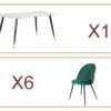 Lavina Dining Set (160 Artificial Marble Top with 6x Green Chair) – Dining Chairs – PR8838
