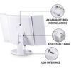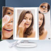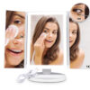 Featuring 3 LED Bar around the mirror, the lighted mirror gives a natural and soft glow to your countenance. The mirror also has a smart touch function that controls the lights at a touch to turn them on or off and adjust their intensities. And with its tri-fold design, the high-definition mirror gives you even more viewing angles from left, right and centre. Better still, the mirror can be swiveled 180° and fixed in any position of your preference.A detachable storage tray makes picking up your makeup essentials easy and always be close at hand.Our LED Makeup Mirror really reflects total convenience and beauty.
