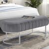 Sumptuous velvet and luxe shine make the LUNARE BENCH GY a glam addition to your modern bedroom or mid-century living room. This oval, backless bench is upholstered in lush velvet with channel tufting around the sides. The half-circle legs are made of metal for contrast. Choose from available color combinations to match your palette.