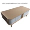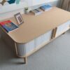 The Marama Range is inspired by the refined simplicity of the modern style, with a flowing curved silhouette accented by textural ribbed detailing. It is a combination of beauty and functionality. With contract color tones, it can match naturally within many existing interior styles. Crafted from sturdy MDF, mounted on solid wood legs. Smoothly sliding tambour doors access easily. Sign nature slatted paneling on the main body of this piece further elevates its modern appeal, whilst lending this sliding door beauty its unmistakable character.