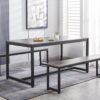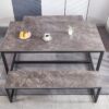 Simply put this dining table is in vogue with its distinctive marble top and clear black iron legs. A durable construction metal frame can go for years. It can go with the matching bench seat or the chair of your choice.
