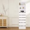 This Mattone 3+6D Wardrobe is made of high quality particle board with paper, which is durable and firm for last long time use. With three open shelves and six large drawers, it provides an ample space for all your essentials. In addition, with a stylish appearance and modern design, the cabinet can add unique charm to your living room, bedroom, kitchen and various places. With a sleek surface, it can be easily cleaned and maintained. If you are looking for a wardrobe, don’t hesitate to buy it!