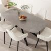 If you are after a dining table that is stylishly designed with a modern appearance and one that is versatile, our Moira Dining Table is the best choice. Beautifully crafted with an artificial ceramic table top and solid iron legs, the dining table is strong and sturdy with a presence that blends perfectly with any décor. With its sturdy construction and sleek top, this table stands out as an elegant dining center. It caters to families and similarly enhances any interior space with its outstanding personality.