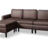 This high-quality artificial leather upholstered sofa is a perfect place to lounge, watch TV or relax with family and friends. This sofa features a wide 3-seater and an ottoman with thickly-padded cushions for the ultimate seating comfort. It is sturdily wood constructed with durable, plastic feet. This versatile sectional sofa features a chaise longue that can be placed on either side of the loveseat, making it a great choice for many living room configurations.