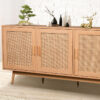 Need a simple yet unique sideboard for your home? Look no further than our Naturlig Buffet Table which is absolutely lovely in every aspect. Made of high-quality particle board with flawless paper veneer finish and solid wood legs, the sideboard is sturdy and durable with equally fine hardware to ensure trouble-free use every time. Although unassuming at first, the sideboard has real rattan doors and sleek handles that will add a touch of exotic chic appeal to any kitchen or dining room. Or you can use it in any space or in any room where a convenient and compact cabinet will do wonders for your storage needs. The Buffet Table comprises a large countertop and two-tier shelving within a three-door cupboard. A modern classic, you can never go wrong with our Naturlig Buffet Table.