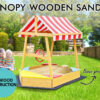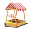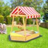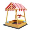 Made with quality fir wood with a smooth and natural finish is perfect for extending play time! Our fabulous sandpit comes equipped with a canopy protecting from the sun rays and rain. Your kids will stay happy and cool while at play in this amazing outdoor toy. Also comes with an internal ground sheet separating the grass and insects from getting into contact with the clean sands and allowing water to drain out of the sand box. Great for single or groups of children to play it , children will have hours of outdoor fun in this amazing sand pit. Letting your children’s creativity run wild, digging, building and creating shapes in the sand pit this summer.