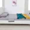 Add a touch of cosiness to your bedroom with our Alva Boucle bed frame. Wrapped in premium boucle fabric, the bed frame is aesthetically pleasing and extremely pleasant and smooth to touch. It will make you feel comfortable. The bed frame comes attached with a textured bed head. It has high-density foam padding, which makes it a cosy spot to sit back and relax, watch a movie, or read a book. Furthermore, the wooden arched slatted base allows the bed to flex properly. It prevents partner disturbance. The slats are quite thick and will provide good support to your mattress. This bed frame has premium heavy-duty metal fixings and solid legs. And the gorgeous cream shade enables you to style it in any bedroom style. It will seamlessly blend into your home decoration.