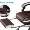 Our Siena Executive Office Chair features a chrome base with easy height adjustment and tilt function, as well as 360° swivel and five durable nylon caster wheels rolling easily. You can recline back to a lowered angled position for taking a quick nap, which is very comfortable. Not least, the chair comes with retractable footrest when you need it. A thick contoured headrest and armrests, ergonomic office chair design with double-layered cushions for chairs, you can have continuous comfort for long hours of gaming or working. With elegant lines, our chair surely will bring a touch of contemporary living to your home or office.