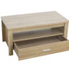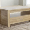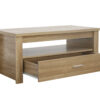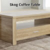 Skog coffee table offers a contemporary twist while ensuring a cohesive and appealing aesthetic for any modern home décor, boasting a timeless and simple design that adds a refreshing touch to your living room. The unique wood-grain detailing adds character to your home decor choices. Crafted from high-quality particle board, this coffee table is built to last. The single drawer helps keep clutter at bay, maintaining a tidy tabletop, while the open shelf provides space for books, magazines, and more.