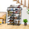 SOGA 12-Shelf Tier Shoe Storage Shelf Space-Saving Caddy Rack Organiser with Side Hooks Black – – Rack0001