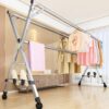 SOGA 2.0m Portable Standing Clothes Drying Rack Foldable Space-Saving Laundry Holder with Wheels – – BSXG2515