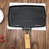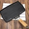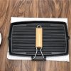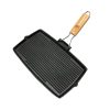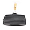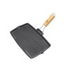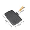 SOGA 20.5cm Rectangular Cast Iron Griddle Grill Frying Pan with Folding Wooden Handle – Frying Pans – ZPai061
