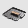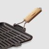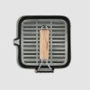 SOGA 24cm Ribbed Cast Iron Square Steak Frying Grill Skillet Pan with Folding Wooden Handle – – ZPai010