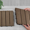 - MATERIAL: SOGA Wooden Composite Decking Tiles are made from a combination of wood and composite materials.