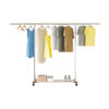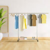 - Stainless steel floor-standing clothes rack, single rod, 2.4 meters, extendable, with wheels and a bottom shelf