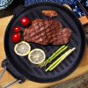 SOGA 2X 24cm Round Ribbed Cast Iron Steak Frying Grill Skillet Pan with Folding Wooden Handle – – ZPai026X2