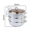 SOGA 2X 3 Tier 26cm Heavy Duty Stainless Steel Food Steamer Vegetable Pot Stackable Pan Insert with Glass Lid – – SteamerTRISTQ26X2
